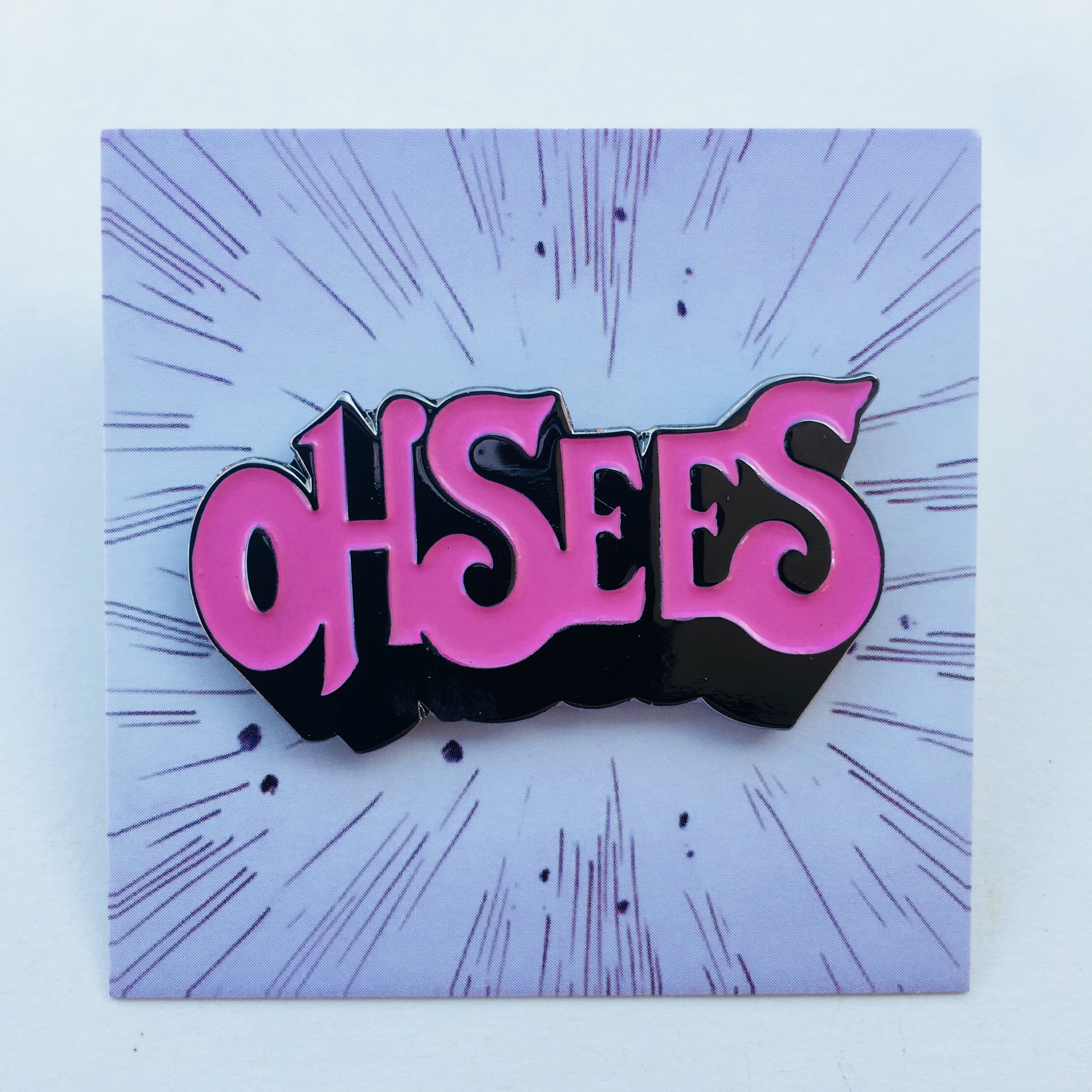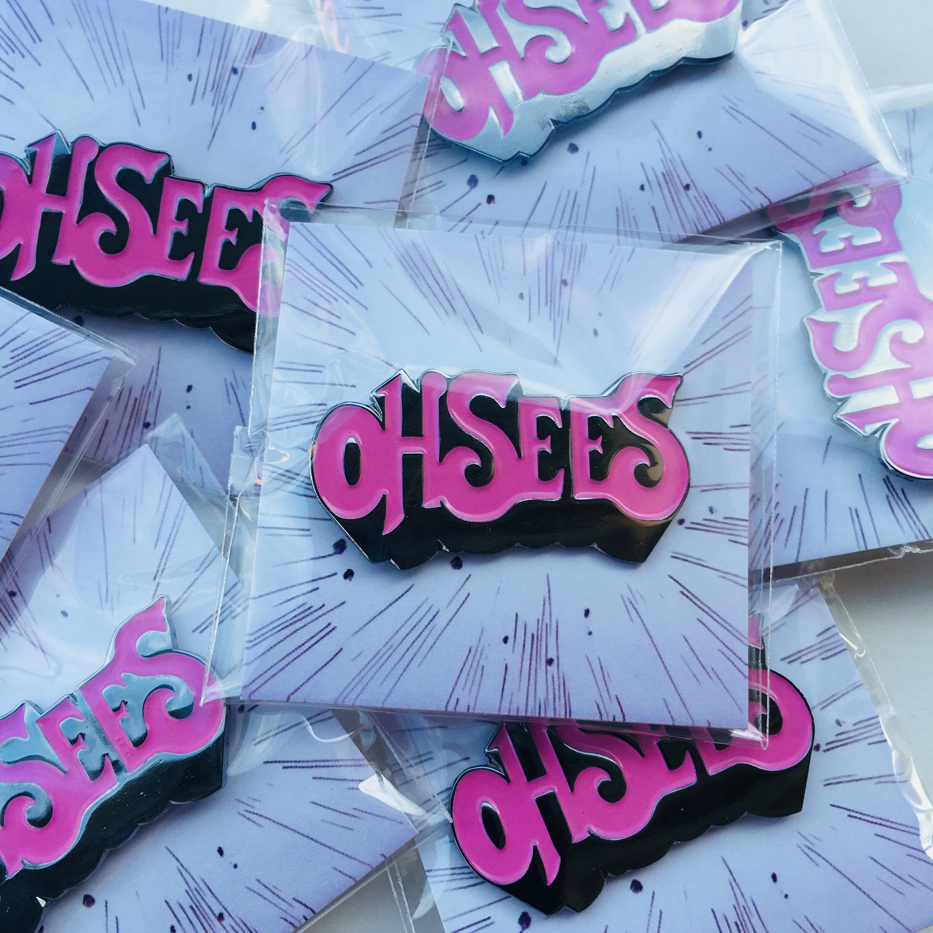 And just like that, the third installment in the Oh Sees pin series is here. An homage logo from a 2009 split 7" with Paul Cary - otherwise known as Bones from his work with The Horrors - this Oh Sees insignia would come to adorn venue walls via projector as faces were melted and heads torn asunder. Available now as an enamel pin with nickel plating and a pink rubber clutch. This is a signature logo of the band for me, and I'm beyond excited to be able to turn this into enamel.